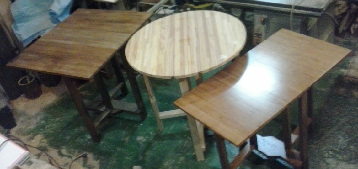 HACEMOS ESTAS MESAS A MEDIDA, DESDE 14 cm. DE ANCHO RECOGIDAS. CIRCULARES, RECTANGULARES Y POLIGONALES. TAMBIEN CON TABLEROS ASIMETRICOS DESDE 160 €, EN 60 cm. DE DIAMETRO Y ACABADO BARNIZADO NATURAL. EN CRUDO DESDE 130 €. (INCLUIDO IVA 21%) |